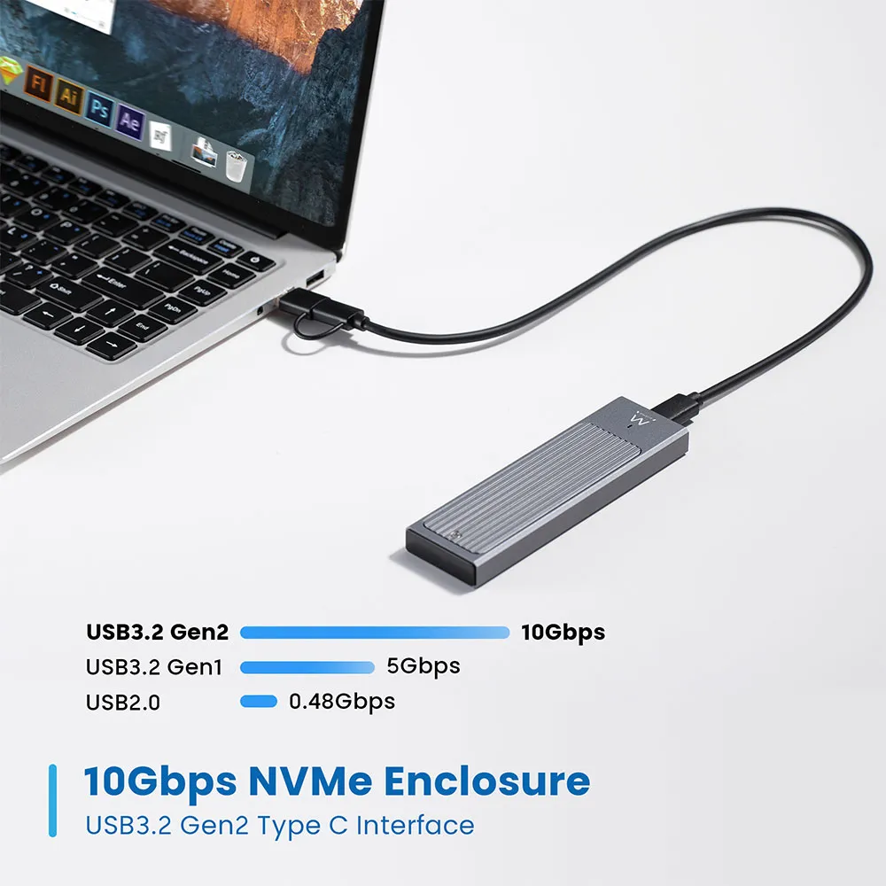 Protege tu SSD M.2 NVMe con la sólida carcasa de aluminio EW7022 Portable USB-C 3.2 Gen2 M.2 NVMe SSD.