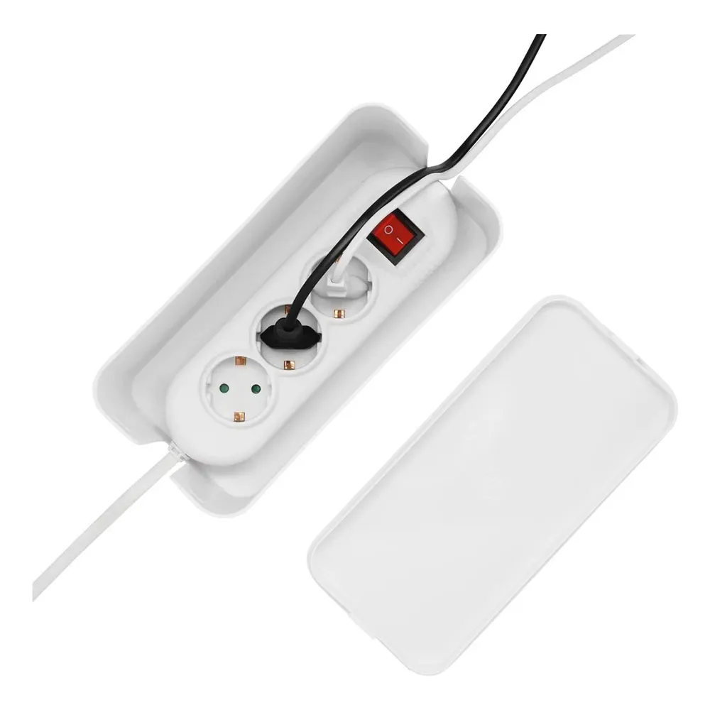 El principal beneficio del HAMA Mini es su capacidad para ocultar y organizar instantáneamente el desorden de cables. Al albergar una regleta completa y sus enchufes conectados dentro de su estructura compacta, transforma un enredo peligroso en una unidad única y ordenada. Esto mejora inmediatamente la estética de tu espacio, creando un área de trabajo más concentrada y productiva o una sala de estar más relajante y acogedora. Su diseño versátil lo convierte en uno de los organizadores más prácticos disponibles, perfecto para colocarlo discretamente en el suelo detrás de un escritorio o mueble de TV, o con orgullo en tu escritorio.