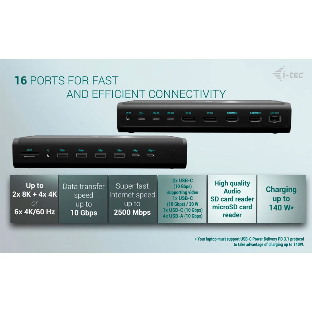 Estación de acoplamiento de pantalla i-tec Universal 6x 4K/60Hz + Power Delivery 140W.