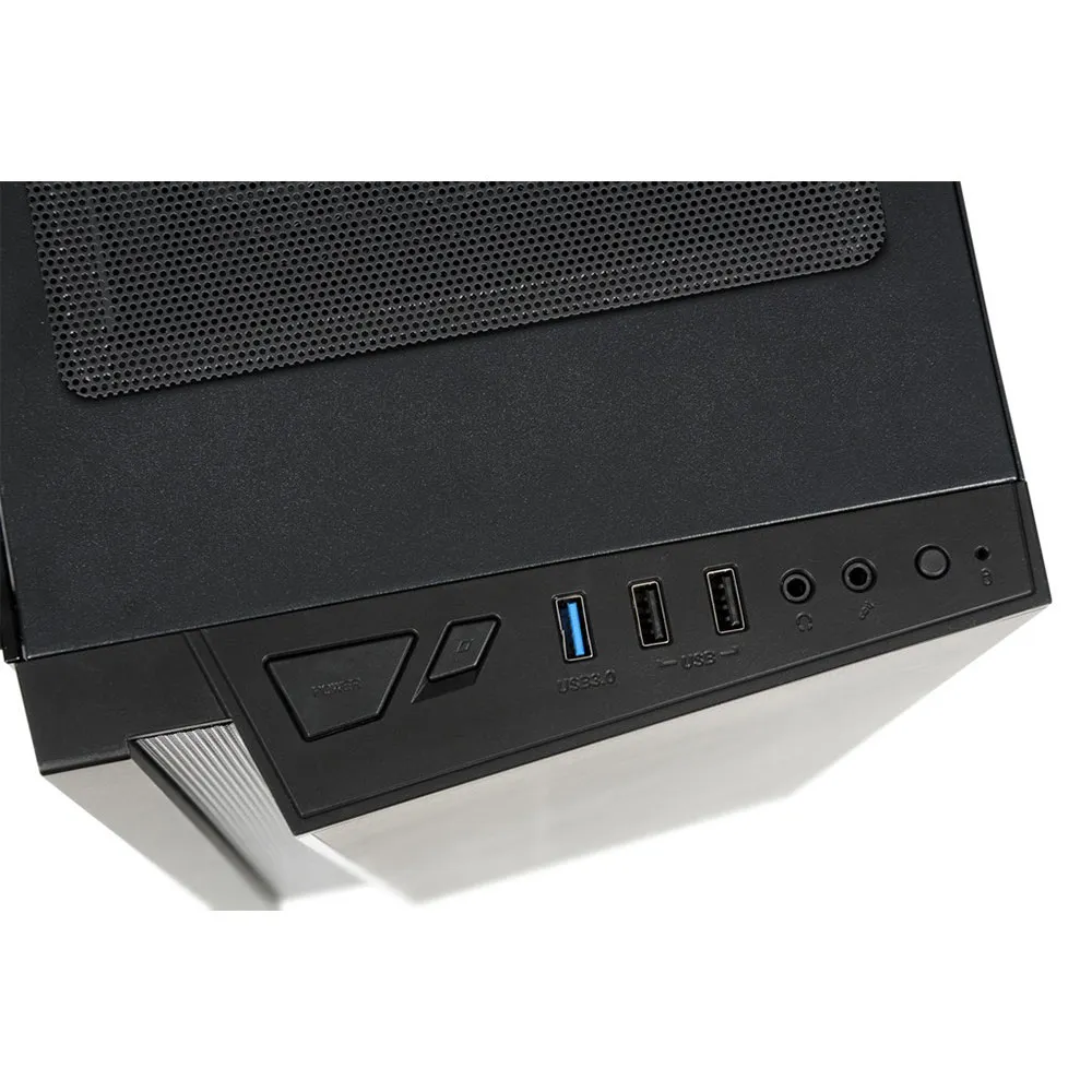 Impresionante Exhibición Visual: Muestra tu construcción con orgullo a través del panel lateral de vidrio templado con bisagras y cristalino. Este panel de fácil acceso ofrece una vista panorámica de tu placa base, GPU y refrigeración personalizada, mientras que el sistema de iluminación ARGB integrado te permite sincronizar colores y efectos para una apariencia verdaderamente personalizada.