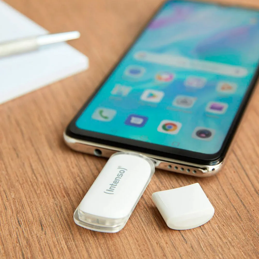 La característica destacada de la Flash Line es su moderna interfaz USB Type-C 3.1 Super Speed. Este conector reversible es el nuevo estándar para innumerables dispositivos, desde los últimos MacBooks y ultrabooks hasta smartphones y tablets Android, asegurando que puedas conectarlo correctamente a la primera, siempre. Libera todo el potencial de tus dispositivos móviles con su capacidad On-The-Go (OTG). La memoria USB Intenso con función OTG se puede utilizar sin necesidad de una aplicación. Simplemente conéctala directamente a tu smartphone o tablet compatible para liberar espacio al instante, hacer copias de seguridad de recuerdos valiosos o transferir archivos a tu ordenador sin necesidad de cables ni software intermedio. Esta funcionalidad plug-and-play la convierte en la herramienta definitiva para una gestión de datos sin esfuerzo sobre la marcha.