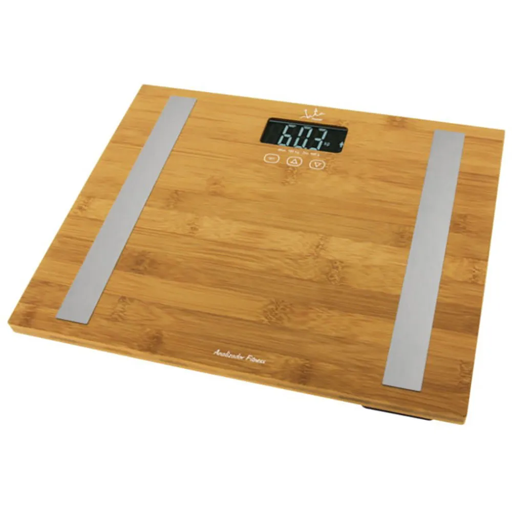 Báscula de Baño JATA 577 Bamboo, memoria para 10 personas y capaz de analizar distintas características.