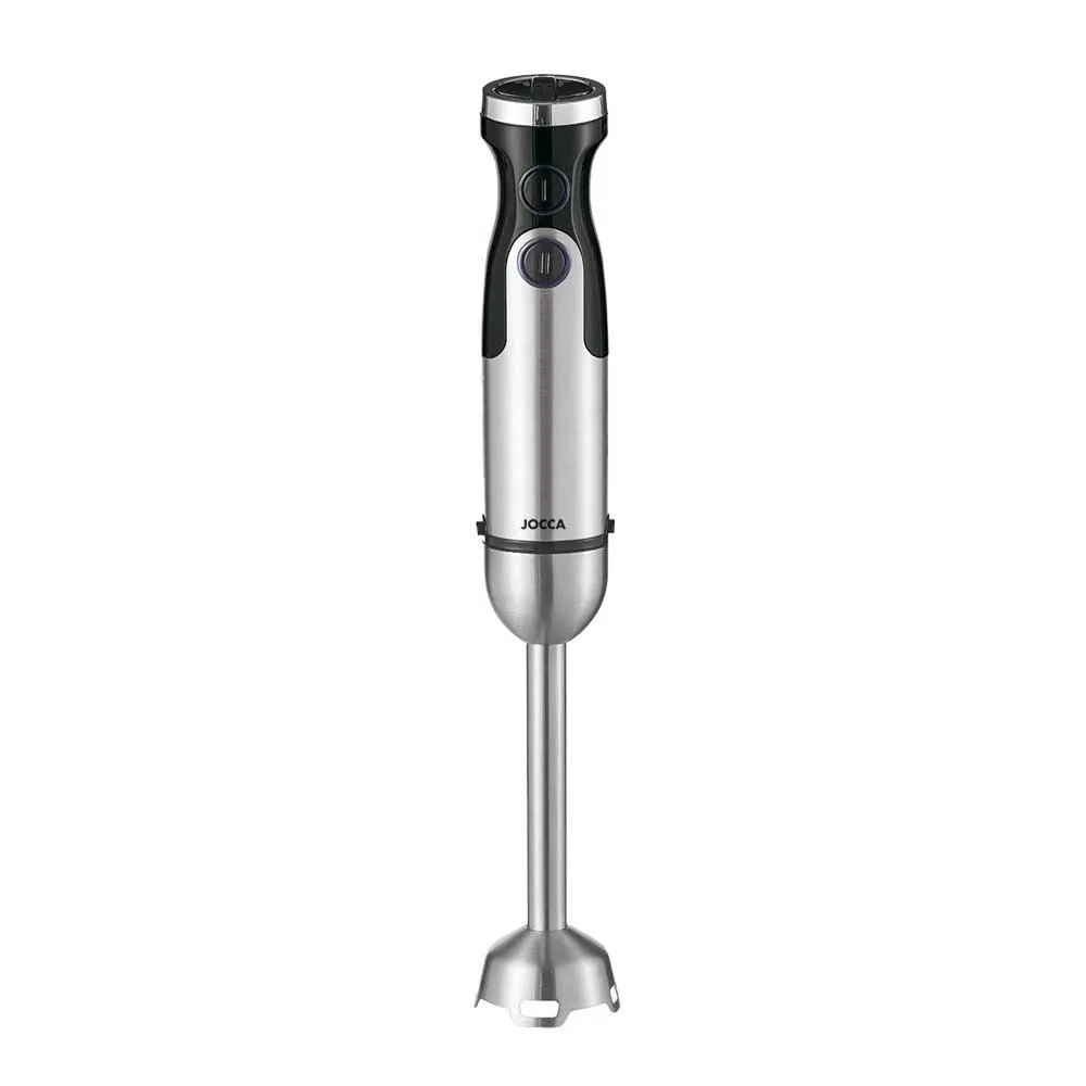 Con la batidora de mano Jocca podrás batir, picar y triturar todo tipo de alimentos en menos tiempo gracias a sus 1200W de potencia y sus accesorios, que incluyen un vaso medidor, varillas batidoras y un picador.
