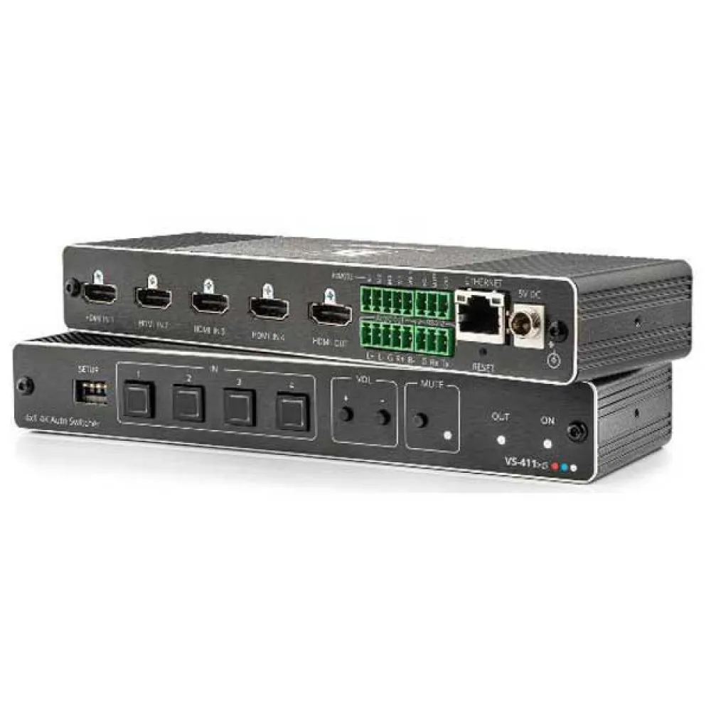 VS−411XS es un conmutador automático inteligente de 4x1 para señales de video HDMI 4K HDR.