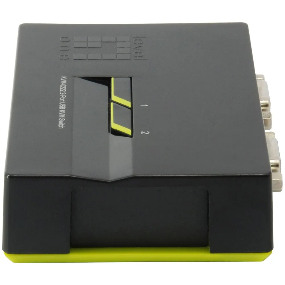 El conmutador KVM USB de 2 puertos KVM-0222 de LevelOne ofrece a los usuarios un conmutador KVM fácil de instalar que puede administrar dos computadoras desde un solo monitor, teclado y mouse.