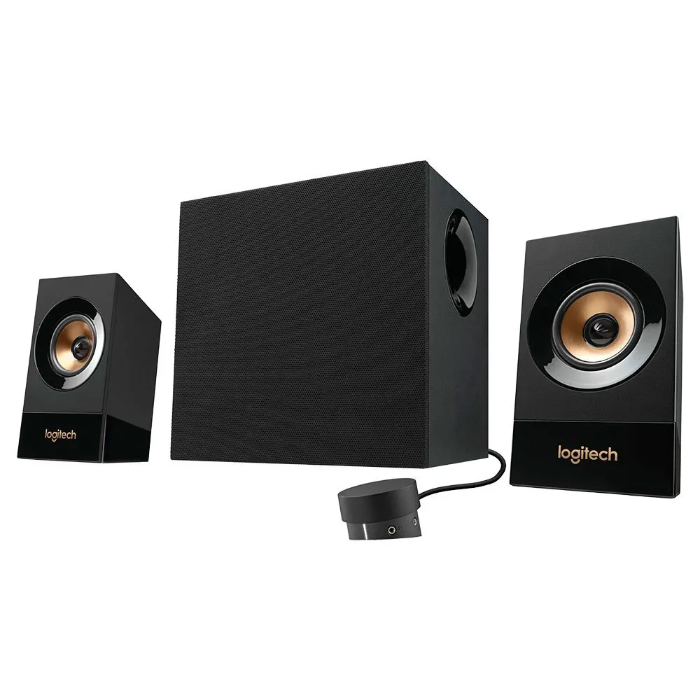 Requisitos del sistema audio con salidas rca o de 3 -5 mm incluidos:ordenador con cualquiera de los sistemas operativos principales (windows® - mac® - chromebook) smartphones tablets televisores reproductores de mp3 consolas de videojuegos:playstatión®3 - xbox 360® información de garantía dos años de garantía de hardware limitada contenido de la caja altavoz satélite derecho altavoz satélite izquierdo subwoofer cable de 3 -5 mm a 3 -5 mm documentación del usuario número de referencia nº de referencia 980 - 001054 dimensiónes altavoz satélite:altura:170 mm (6 -69 in) anchura:100 mm (3 -93 in) profundidad:85 mm (3 -34 in) peso:525 g (1 -16 lb) subwoofer:altura:265 mm (10 -43 in) anchura:255 mm (10 -03 in) profundidad:195 mm (7 -67 in) peso:4 -0 kg (8 -82 lb) sección de control altura:55 mm (2 -16 in) anchura:72 mm (2 -83 in) profundidad:72 mm (2 -83 in) peso:200 g (7 oz) longitud del cable:cable de alimentación - carga:200 cm (6 -6 ft) altavoz satélite derecho a subwoofer:185 cm (6 -1 ft) altavoz satélite izquierdo a subwoofer:185 cm (6 -1 ft) cable fijo de sección de control:185 cm (6 -1 ft) especificaciónes tipo de altavoz:2.