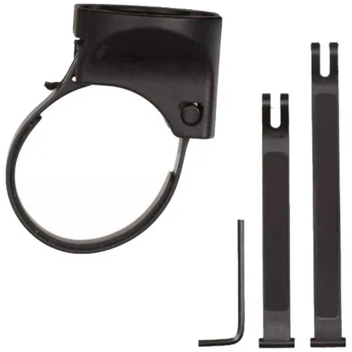 Base de plástico duro con correas resistentes, se necesita una llave hexagonal (incluida) para asegurarlo al manillar, una vez instalado, no es ajustable, ni vertical ni horizontalmente. Se incluyen dos correas adicionales que funcionarán con manillares de la mayoría de los tamaños (hasta 41 mm), incluidas las barras Aero. Este soporte puede soportar fácilmente dispositivos Garmin de peso moderado, incluidas luces de bicicleta, teléfonos móviles, cámaras GoPro, etc.