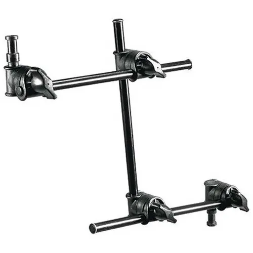 Brazo articulado único de tres tramos. Accesorio superior con un accesorio de luz de 3/8´´ con espita de 16 mm. Fijación inferior con espita de 16 mm (compatible con fijación ligera Superclamp) con rosca de 1/4´´.