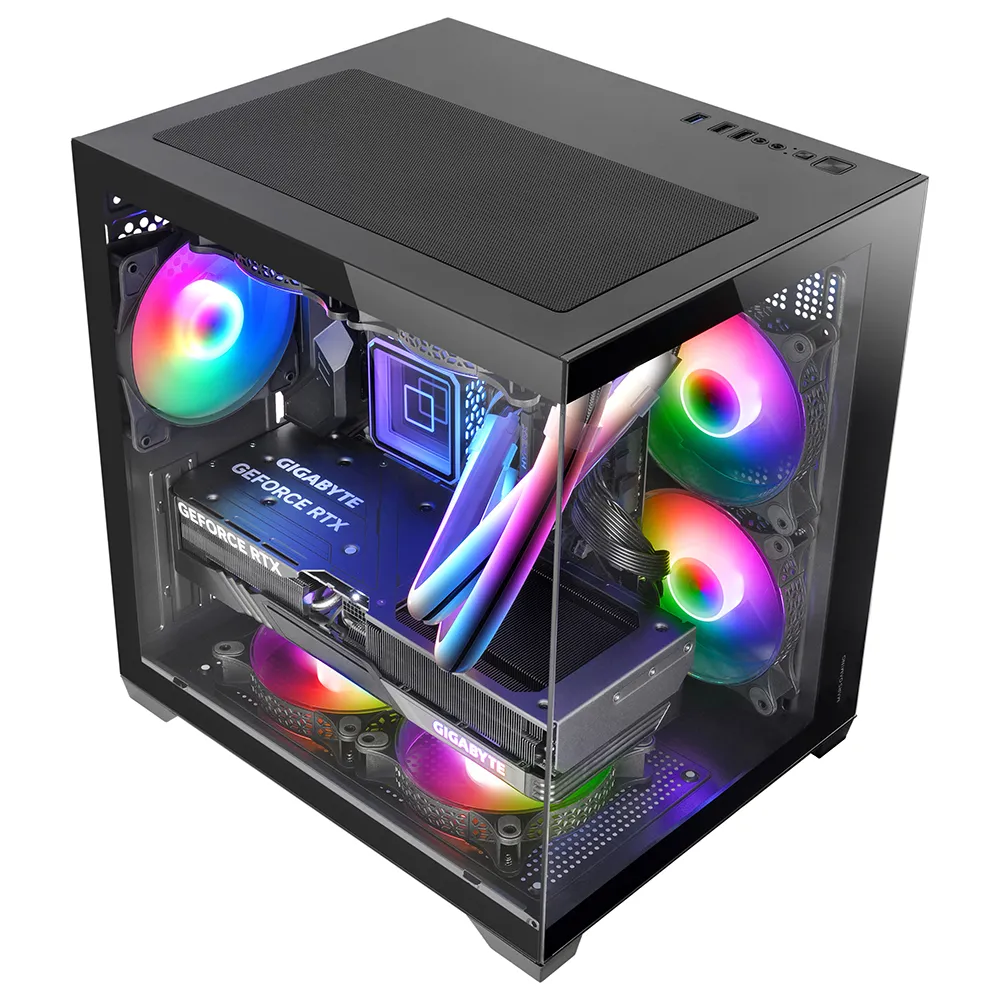 Su cristal templado continuo en los paneles frontal y lateral proporciona una vista panorámica del interior, mostrando cada componente con una estética impecable.