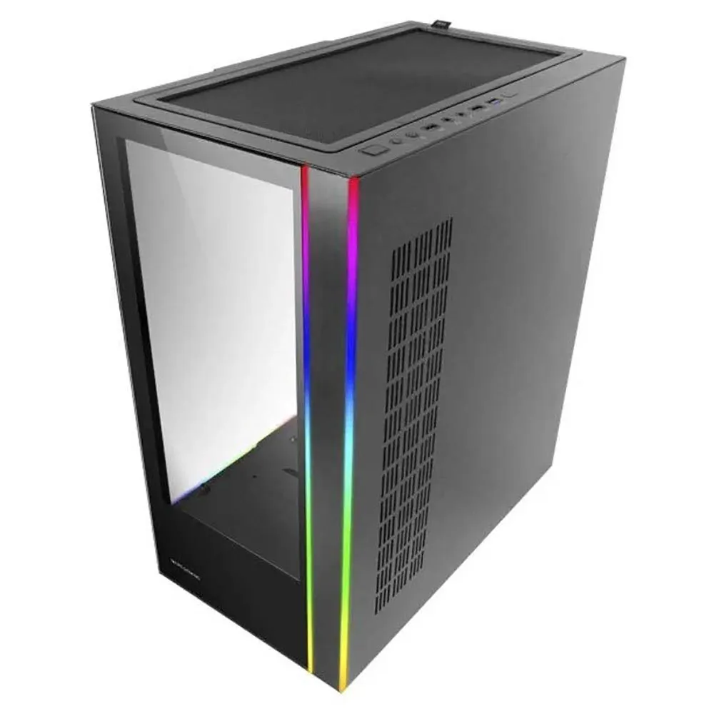 - Torre E-Atx Xxl con capacidad ampliada y soporte completo para refrigeración líquida. Doble tira LED Argb en la parte delantera y lateral con doble ventana de vidrio templado completo para mostrar todo.