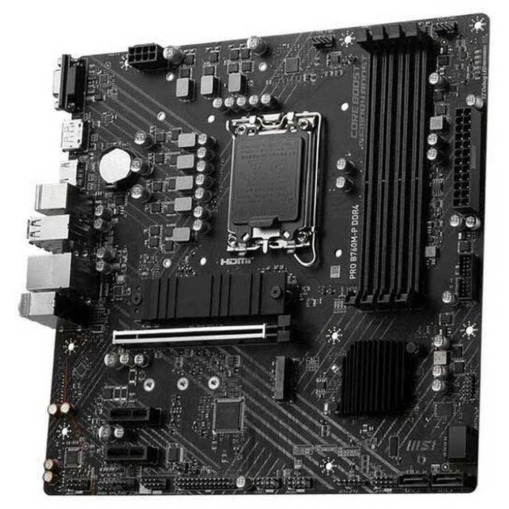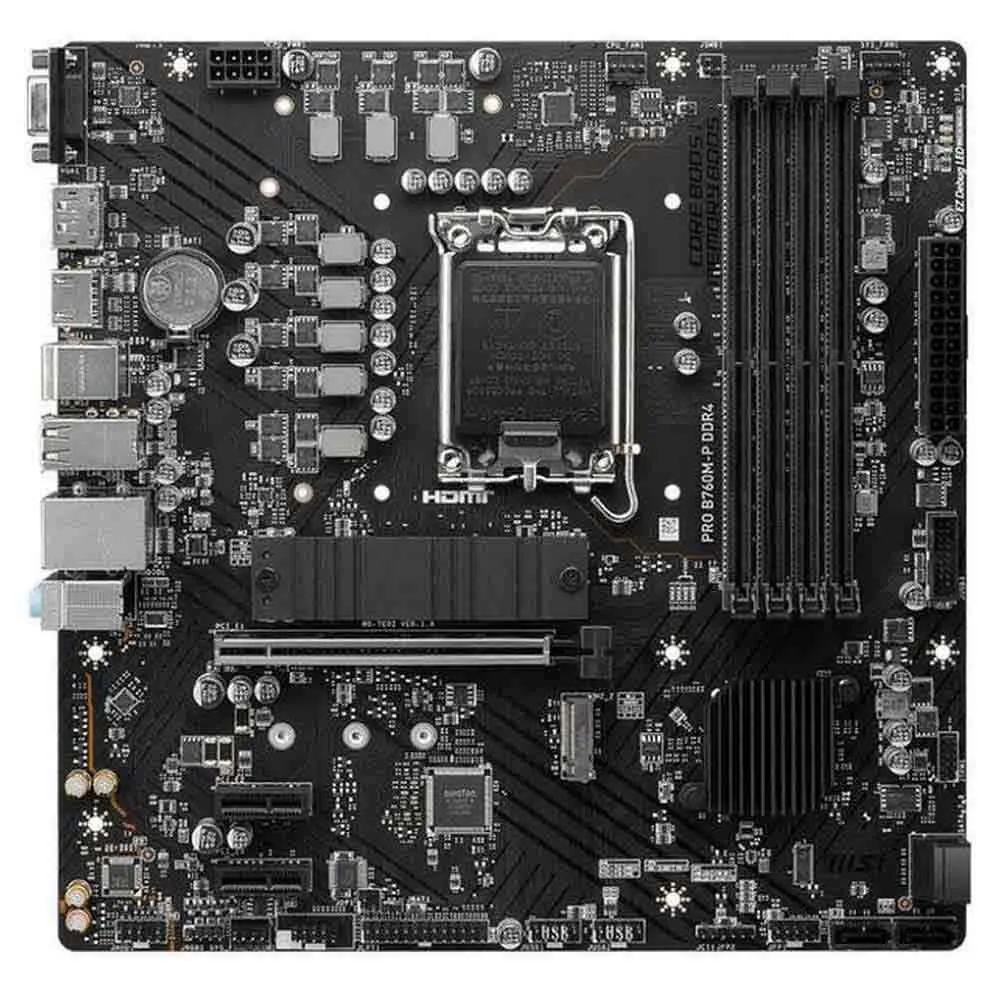 Arma tu próxima PC con la fiable y completa placa base MSI PRO B760M-P DDR4. Diseñada para procesadores Intel LGA 1700, esta placa micro ATX proporciona una base estable para la productividad y la informática diaria. Soporta hasta 128 GB de memoria DDR4-4800 de alta velocidad y ofrece almacenamiento flexible con puertos M.2 y SATA III, incluyendo soporte RAID. Experimenta una red ultrarrápida con LAN 2.5G y conecta todos tus periféricos con USB 3.2 Gen 2 Tipo-C, HDMI y DisplayPort. Una elección inteligente para un sistema potente y eficiente