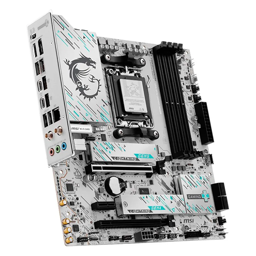 Con el último Wi-Fi 7, LAN 5G, solución PCIe 5.0, alimentación PCIe suplementaria y funciones EZ DIY exclusivas, está lista para juegos ininterrumpidos 24/7 optimizados para procesadores AMD Ryzen™ serie 9000.