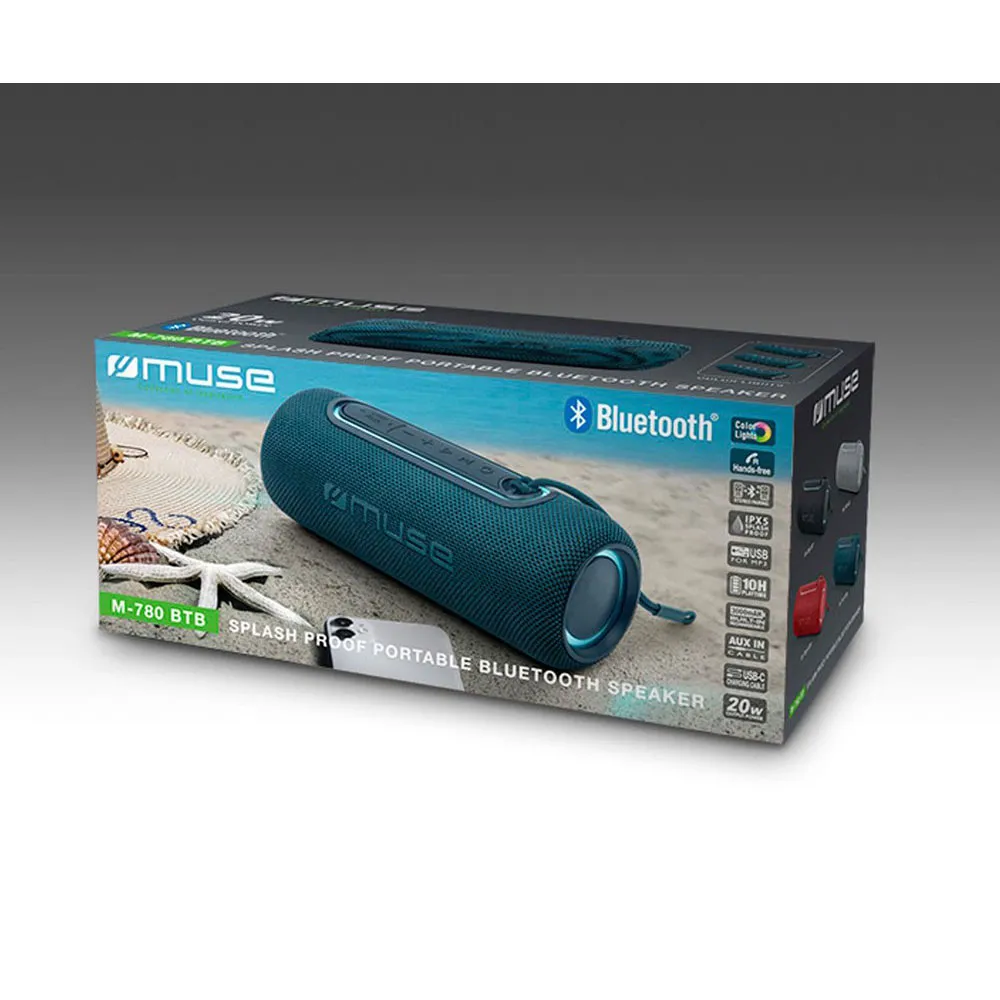 El MUSE Bluetooth Speaker Blue es un dispositivo portátil y duradero con una batería recargable incorporada que ofrece hasta 8 horas de reproducción continua. Además, su diseño ligero y compacto lo hacen perfecto para usar en movimiento, ya sea que quieras disfrutar de la música en la playa, en el parque o durante un viaje por carretera.
