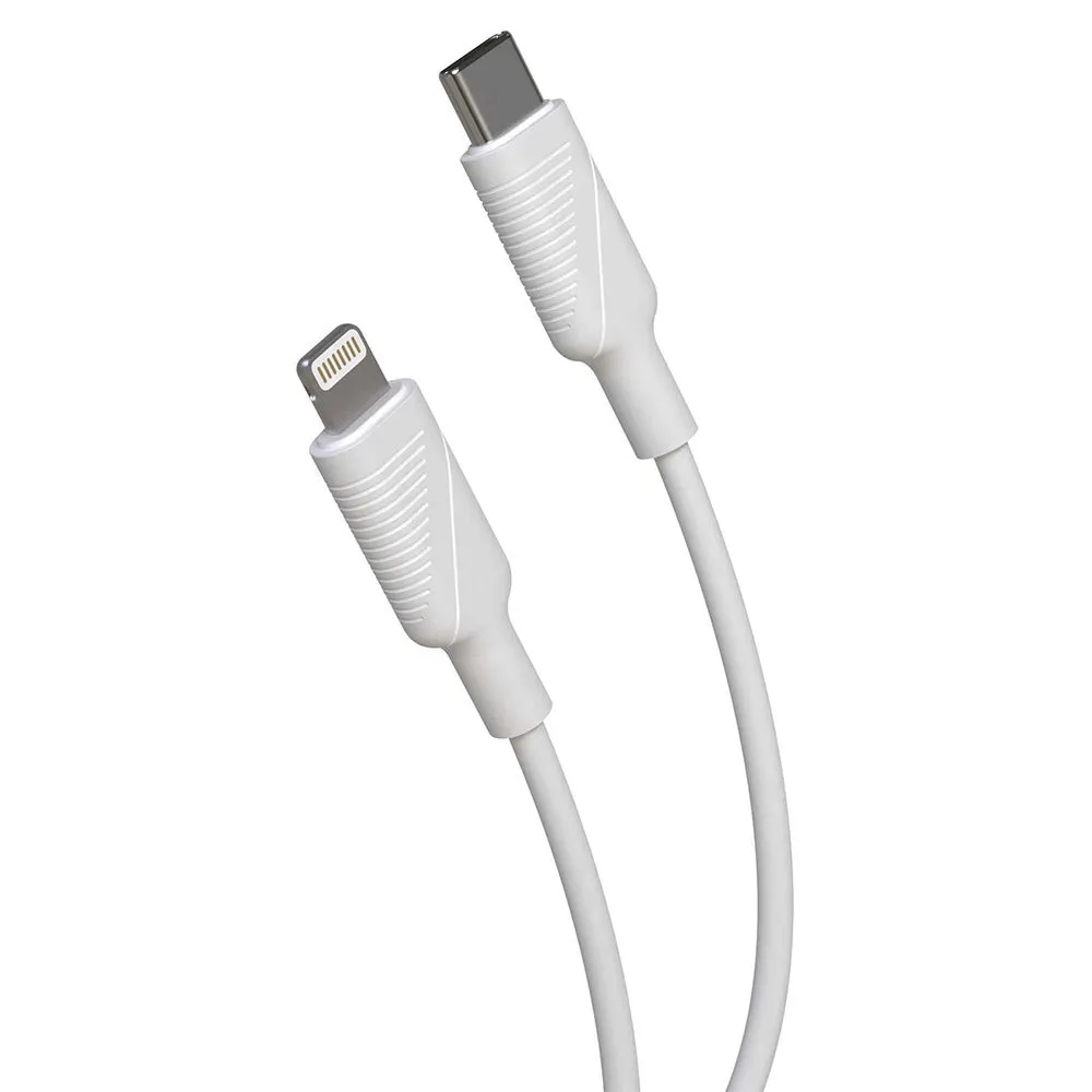 Cable Tipo C a Lightning MFI de muvit for change con 3A, 1,2m de longitud y de color blanco.