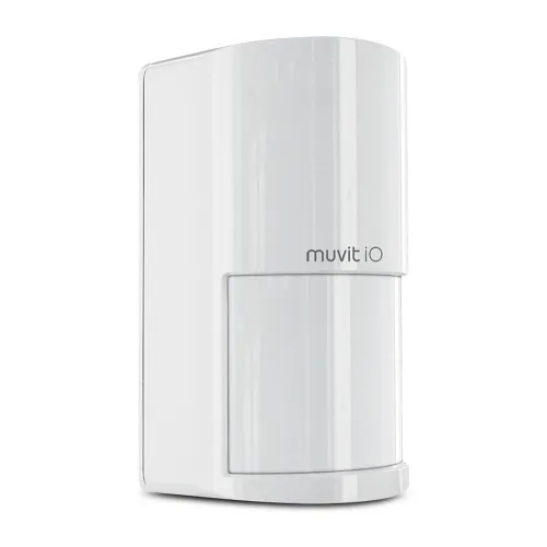 El sensor de movimiento PIR interior se puede agregar a cualquier sistema de seguridad muvit iO. Detecta movimiento en un rango de hasta 10 metros y en un ángulo de 110º.