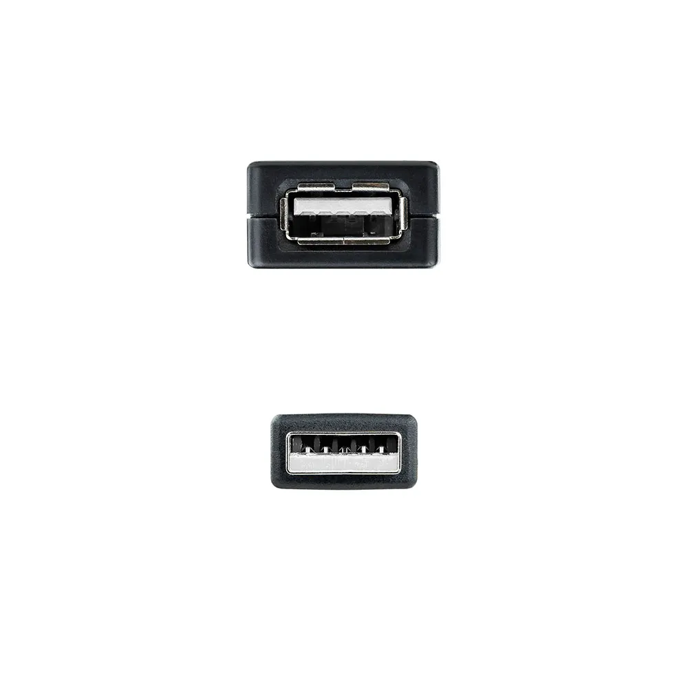 Cable prolongador USB 2.0 con conector tipo A macho en un extremo y tipo A hembra en el otro.