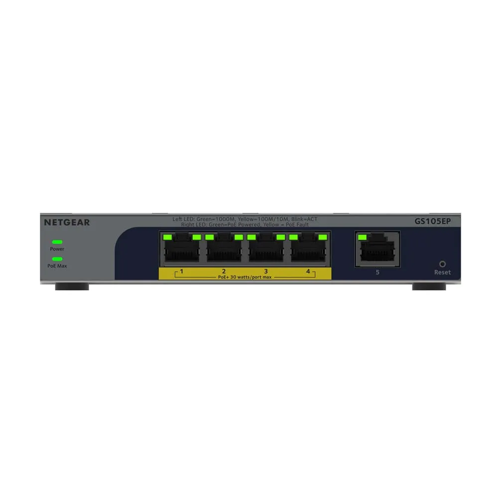 5 x Gigabit Ethernet ports with 4 x PoE+ ports Plug-and-play with fundamental network management features QoS and VLAN management Fanless and silent Desktop or wall-mount.