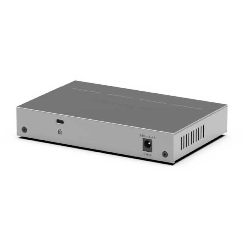 CONTROLES POE SENCILLOS Gestione la priorización de PoE, el límite de energía PoE por puerto, la programación de PoE y más para un control avanzado sobre todos los dispositivos alimentados por PoE. ETHERNET GIGABIT 5 puertos proporcionan conectividad Ethernet gigabit a sus dispositivos. VLANs Separación de red basada en puertos y en 802.1Q en grupos más pequeños para un uso más seguro y eficiente de los recursos de red. DISEÑO SIN VENTILADOR El funcionamiento silencioso hace que este conmutador sea perfecto para entornos sensibles al ruido. OPCIONES DE MONTAJE VERSÁTILES Coloque su conmutador en su escritorio o móntelo en la pared con el hardware proporcionado en la caja.