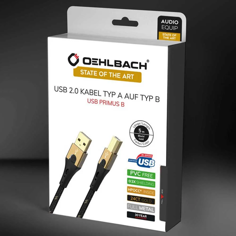 Los conectores USB tipo B se encuentran a menudo en amplificadores de audio, impresoras o escáneres, medios de almacenamiento o proyectores de presentación. Con este tipo de conexión, la transmisión de datos absolutamente confiable y sin pérdidas es particularmente importante. Esto es exactamente lo que logra el cable de datos Usb 2.0 de Oehlbach Usb Primus B. La conexión USB A se puede utilizar de forma reversible, es decir, en ambos lados. El Usb Primus B de Oehlbach crea una conexión de última generación con el cable USB tipo A a tipo B. Esta calidad especial se debe principalmente a un conductor interno monocristalino libre de oxígeno hecho de cobre Hpocc. Bajo un triple blindaje, proporciona transferencia de datos sin restricciones. El cable Usb Primus B está equipado con conectores completamente metálicos chapados en oro de 24 quilates en las dos conexiones para una confiabilidad de contacto del 100 %. La cubierta de tela de alta calidad del cable proporciona mayor protección. Esto evita torceduras accidentales y fortalece la durabilidad de este cable premium.