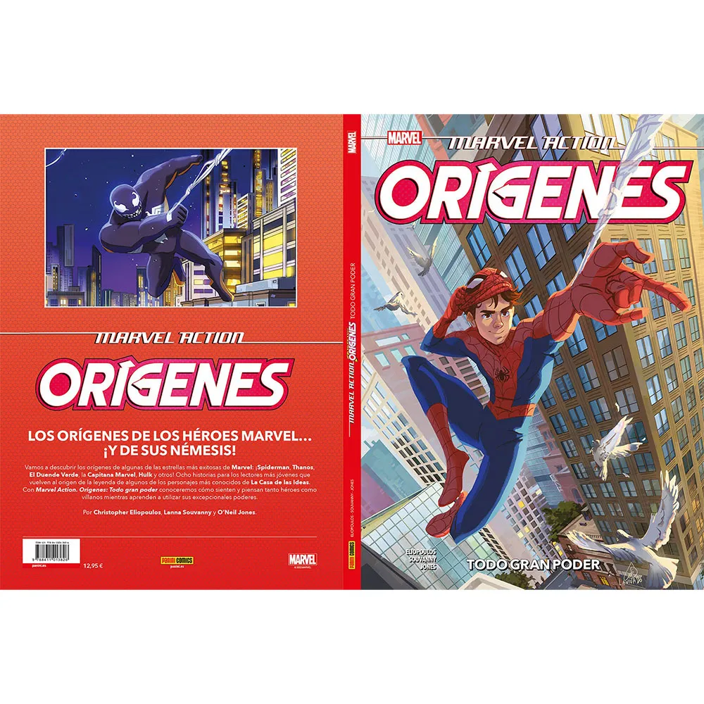 Los orígenes más importantes de la historia de Marvel en un solo cómic. Descubre cómo Peter Parker y Miles Morales se convirtieron en Spiderman, presencia el nacimiento de Thanos, la llegada del Capitán Marvel, la transformación de Duende Verde, Hulk y Rhino, el primer encuentro de Eddie Brock con el simbionte Venom, el aprendizaje de Ojo de Halcón y cómo Loki obtuvo sus poderes