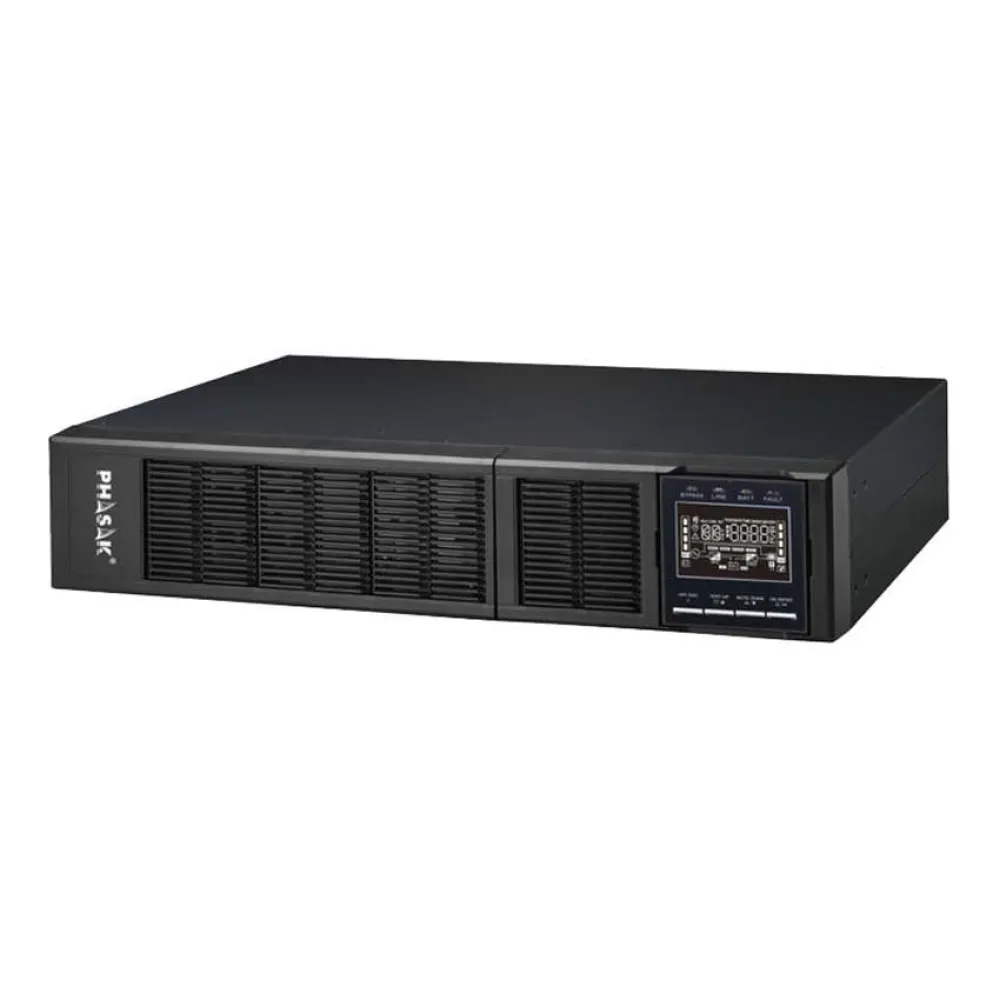 Especificaciónes phasak online ph 9360:potencia:6000 va capacidad máxima soportada:5400 w tensión mínima de entrada en ac:160 v tensión nominal de salida en ac:230 v tensión máxima de entrada en ac:300 v rango de frecuencias:4654 hz o 5664 ghz factor de potencia:0 -99 tipo de onda:senoidal pura tipo de batería:12v 7ah número de baterías:20 corriente de carga:2000 ma voltaje de carga:273 v dimensiónes:580 x 438 x 133 mm peso ups:17 kg - pack baterías:57 kg nivel de ruido:menos de 55 db.