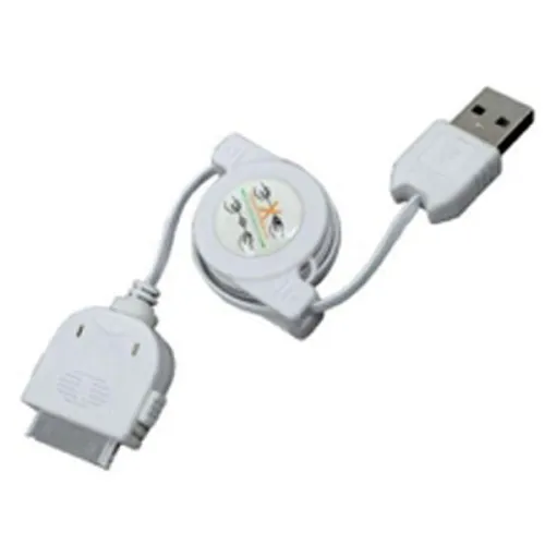 El conector de base para iPod con cable USB retráctil ofrece 400 MB para una transferencia rápida de música y datos en iPod y iPhone 4G.