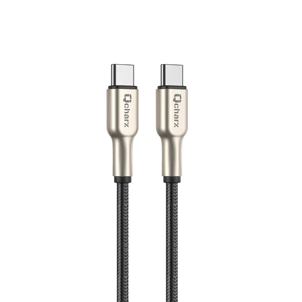 Cable de carga y transferencia de datos New York, con conector Tipo C a Tipo C, diseño de cabezal blindado y cable gris oscuro antienredos.