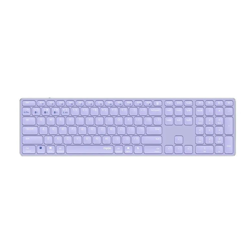 El RAPOO E9800M Teclado Inalámbrico en color morado es un dispositivo elegante y estilizado que mejora su experiencia de escritura. Este teclado inalámbrico cuenta con un diseño compacto y delgado, lo que lo hace perfecto para aquellos que siempre están en movimiento.