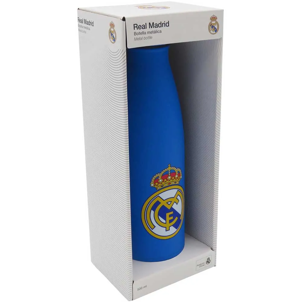El diseño encarna la elegancia y el prestigio del Real Madrid. Presenta un elegante acabado negro mate que es a la vez moderno y atemporal. Esto se complementa con una textura de goma premium, que no solo proporciona un agarre cómodo y antideslizante, sino que también añade una sensación táctil de alta calidad a la botella. La pieza central es el icónico escudo del Real Madrid, representado en un oro brillante que destaca audazmente sobre el fondo negro, asegurando que tu lealtad sea visible para todos. La tapa de rosca segura está diseñada para ser completamente a prueba de fugas, dándote la confianza para tirarla en tu bolso sin pensarlo dos veces.