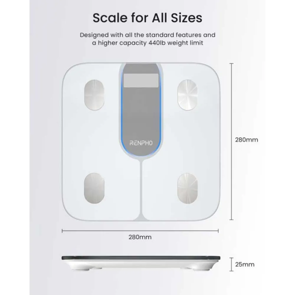 La báscula Renpho Elis 1C Blanca es una báscula de baño elegante y moderna que proporciona mediciones precisas y fiables de su peso. Esta báscula está diseñada con materiales duraderos y un acabado de alta calidad, lo que la convierte en una adición elegante a cualquier baño.