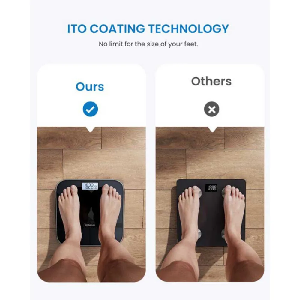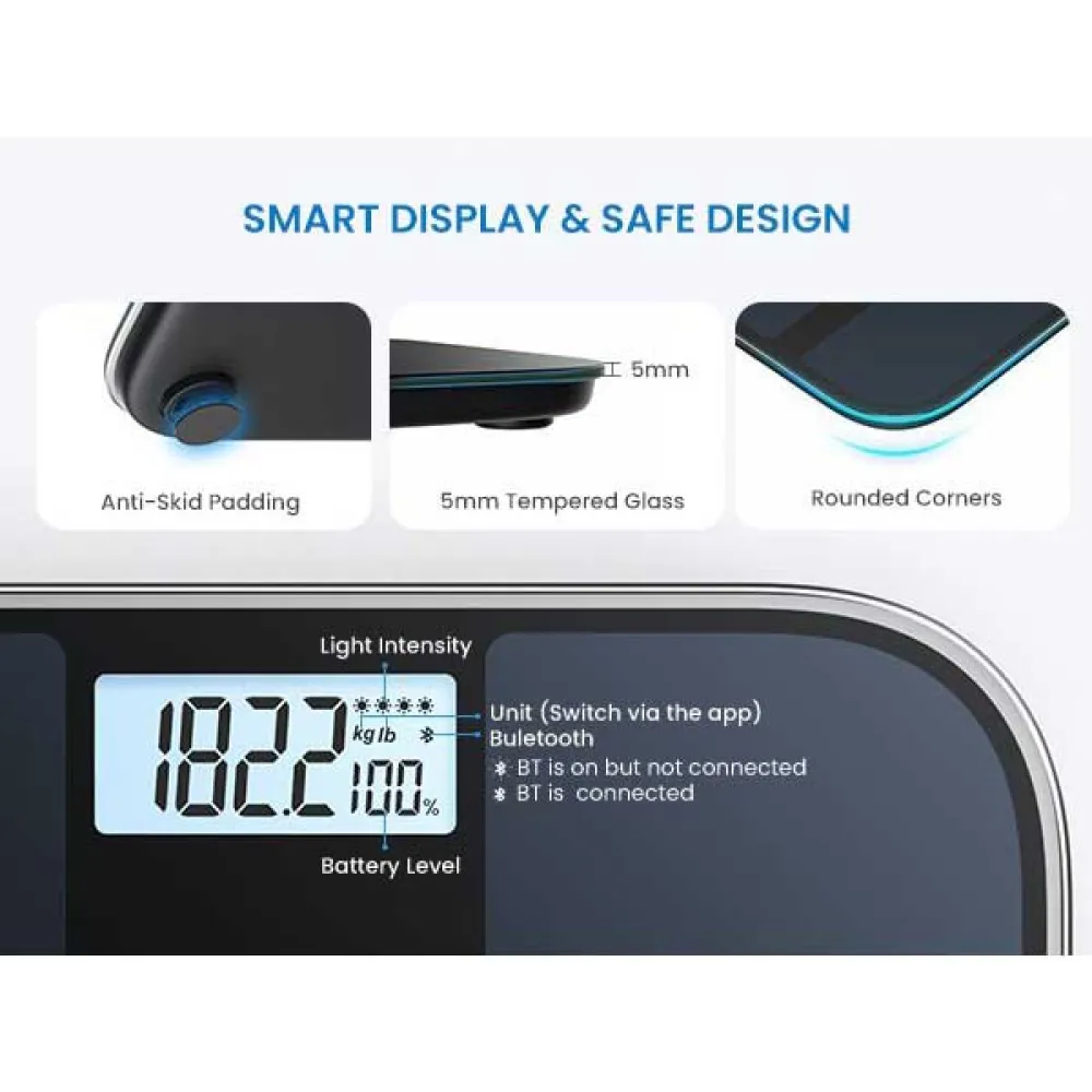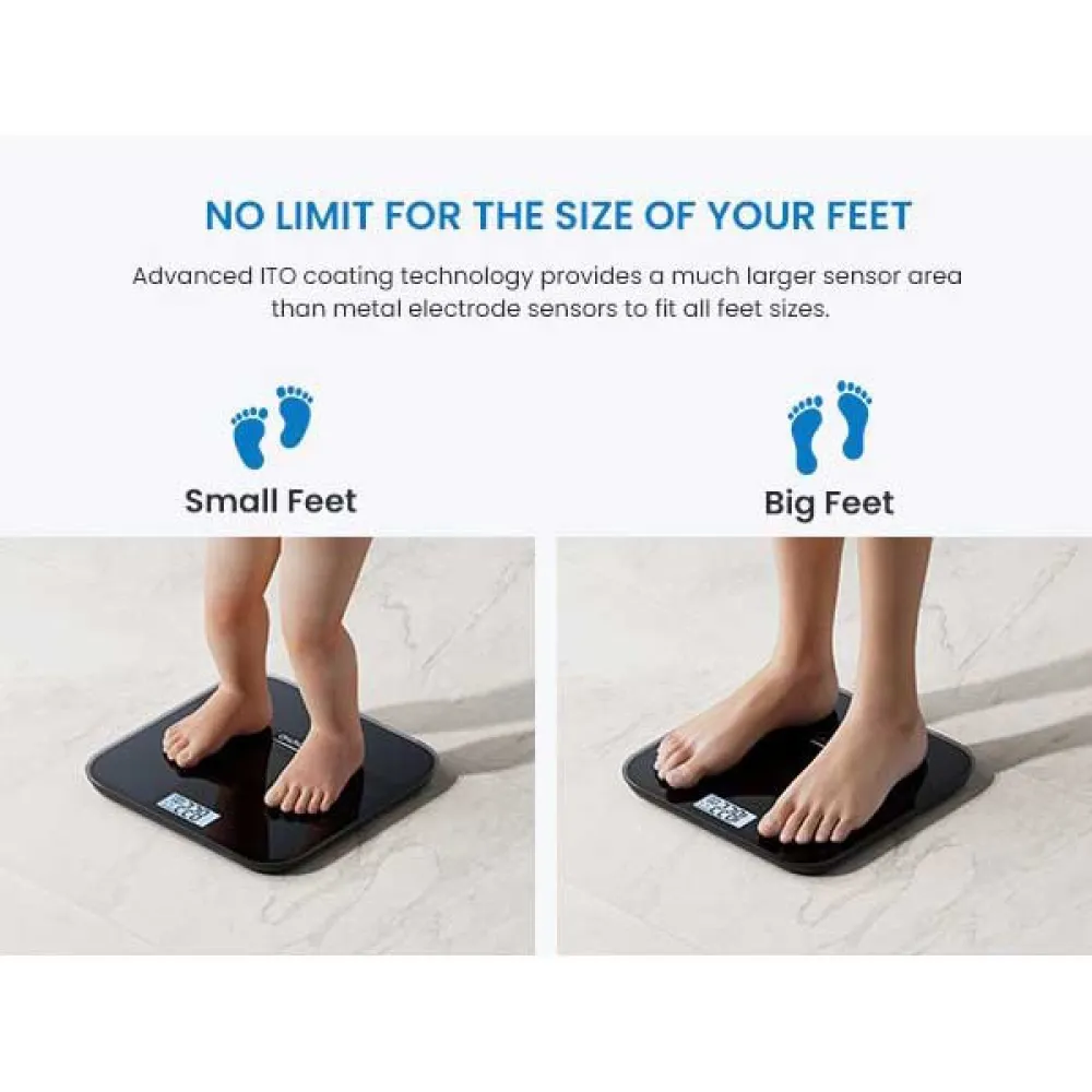 El elegante diseño negro de la báscula Renpho Elis 2 añade un toque moderno a cualquier baño o dormitorio. La báscula está equipada con cuatro sensores de alta precisión que garantizan mediciones precisas y consistentes en todo momento. También cuenta con una gran pantalla LED fácil de leer, incluso en condiciones de poca luz.