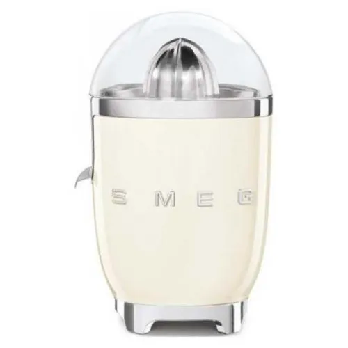Exprimidor de Cítricos Crema, Estética Brillante Estilo Años 50. El exprimidor eléctrico de cítricos CJF01 de Smeg combina diseño, fiabilidad y máximo rendimiento.