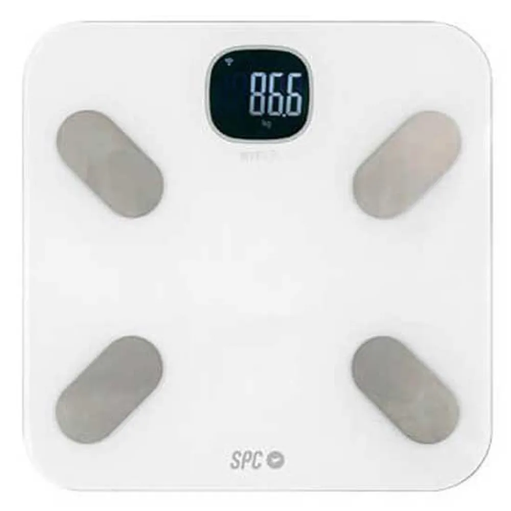 SPC Atenea Fit. Tipo: Báscula personal electrónica, Capacidad máxima de peso: 180 kg, Color del producto: Blanco. Ancho: 300 mm, Profundidad: 300 mm, Altura: 26 mm. Cantidad por paquete: 1 pza (s). Sistemas operativos móviles compatibles: Android, iOS