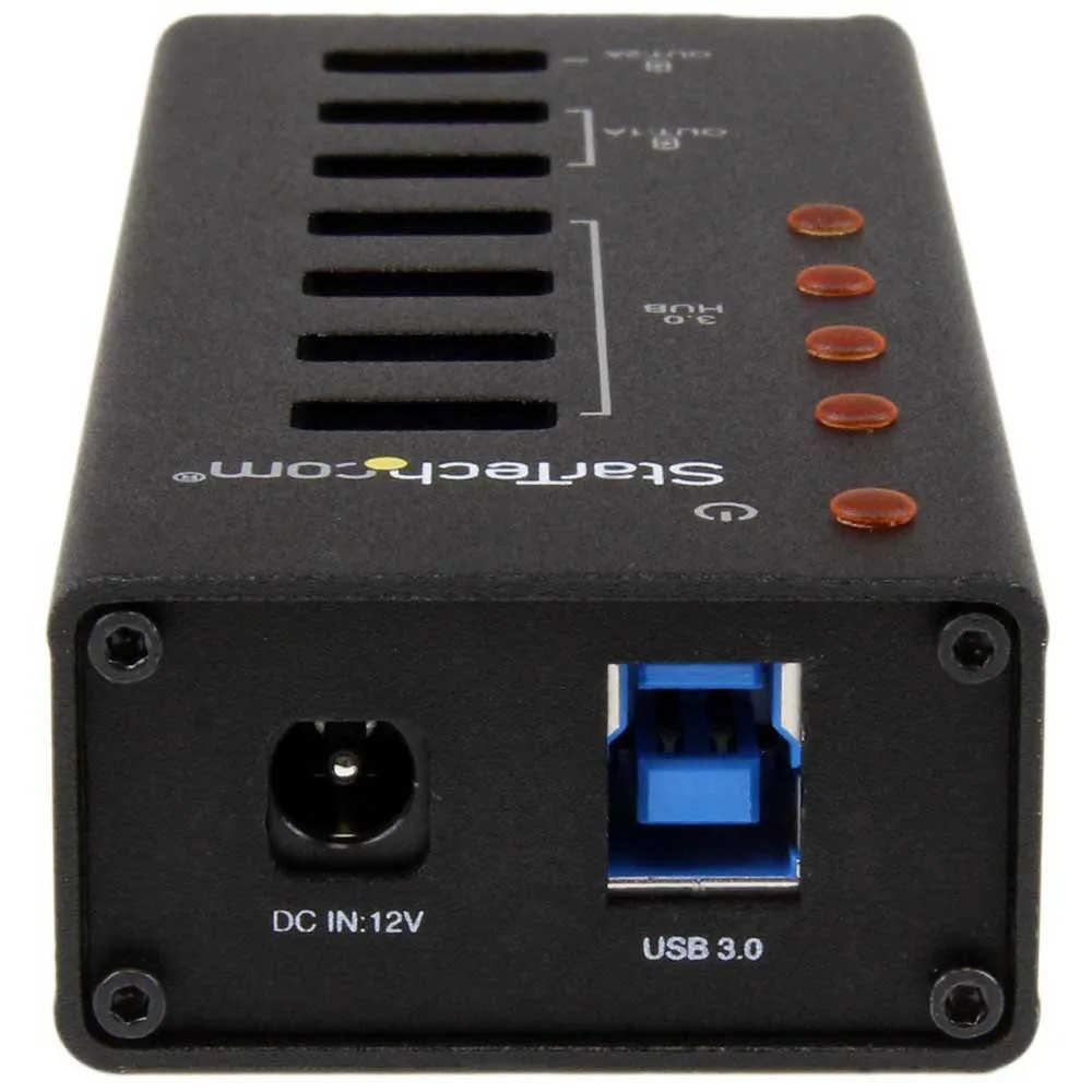El concentrador USB 3.0 ST4300U3C3 permite la funcionalidad de carga USB y concentrador de datos simultáneos al agregar tres puertos de carga USB dedicados, así como cuatro puertos de datos USB 3.0, para un total de siete puertos, todo a través de una sola conexión de host USB 3.0.