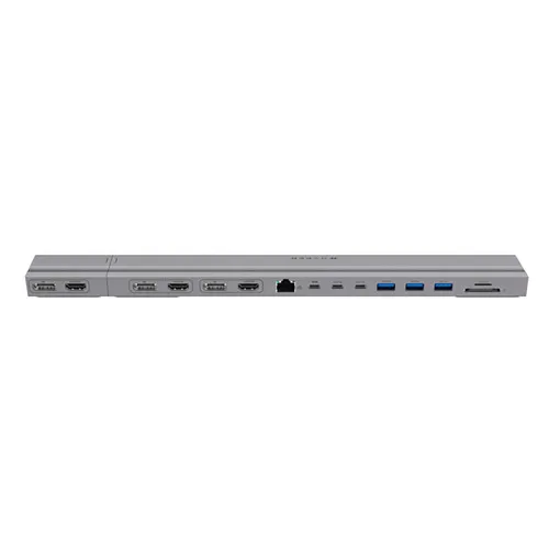 - Expande la conectividad de tu MacBook de 13 a 16 con 15 puertos, incluyendo HDMI 4K 60Hz x 3, DP 4K, 60Hz x 3, ranuras MicroSD/SD, Ethernet de 1 Gb, USB-C 10Gbps x 2, USB-C PD 100W, USB-A 10Gbps y USB-A 5Gbps x 2.