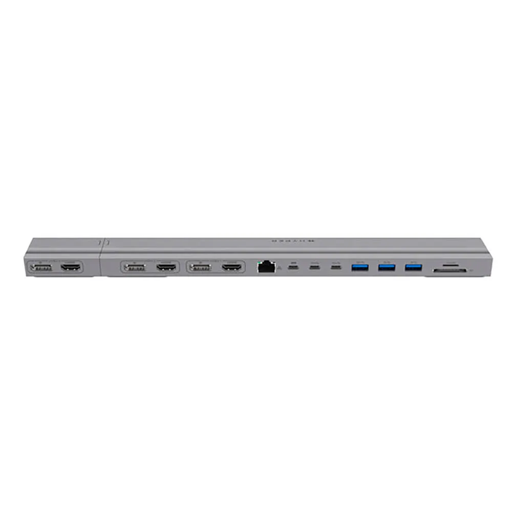 Diseñada para creativos de élite, editores de vídeo o profesionales de negocios, la estación de acoplamiento multipantalla 4K para MacBooks de 13 a 16 proporciona una conectividad máxima al permitir el soporte nativo de triple pantalla 4K 60Hz sin controladores y cuenta con 15 puertos para la expansión de periféricos. A diferencia de la mayoría de los competidores que te obligan a usar ciertos puertos para conectarte, HyperDrive cuenta con tres HDMI y tres DisplayPorts para que los usuarios tengan la flexibilidad de crear cualquier configuración que deseen. Está fabricado con aluminio fresado con precisión y se adapta debajo del chasis de un MacBook, lo que proporciona beneficios ergonómicos, disipa el calor y reduce el desorden del escritorio. Por último, la estación de acoplamiento cuenta con un concentrador magnético extraíble que puede quitar para proporcionar compatibilidad y conectividad de doble pantalla para MacBooks de 13 a 14.