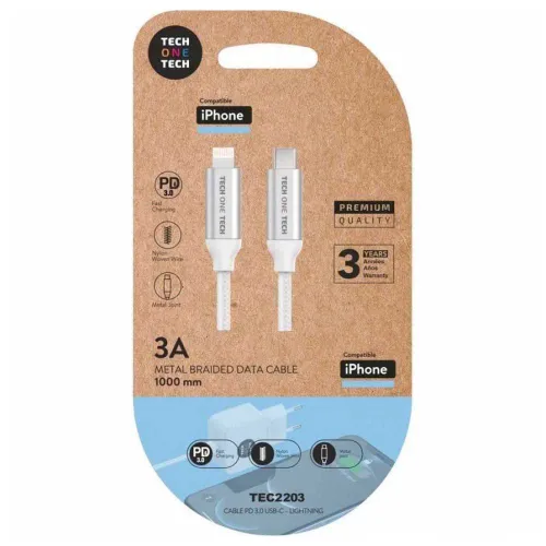 Cable Lightning a USB-C TECH ONE TECH TEC2203 (1 m) | Carga Rápida y Sincronización de Datos