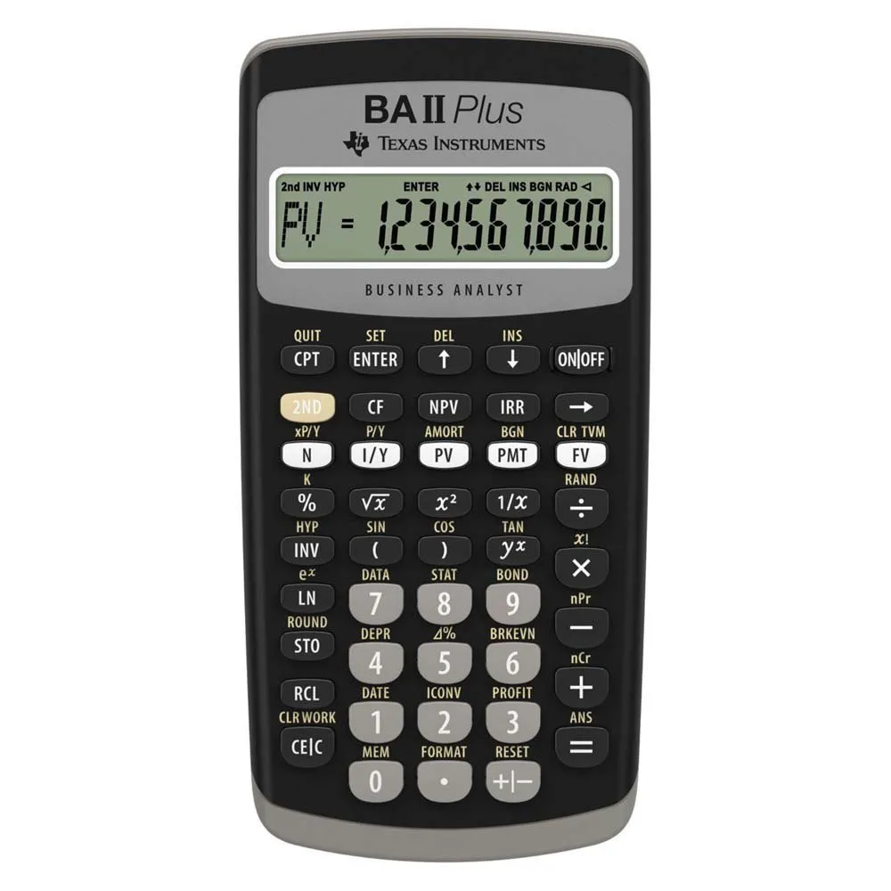 La BA II Plus está aprobada para su uso en muchos exámenes profesionales, incluidos los exámenes CFA, CFP y FRM, lo que le brinda la confianza de que está utilizando una herramienta confiable y aceptada. Su uso generalizado en la industria financiera también la convierte en un activo valioso para la creación de redes y la colaboración, ya que utilizará la misma calculadora que muchos de sus colegas y mentores.Invertir en la calculadora financiera TEXAS INSTRUMENTS BA II Plus es una inversión en su futuro. Es una herramienta versátil, confiable y potente que le permitirá tomar decisiones financieras informadas y alcanzar sus metas académicas y profesionales. Ya sea que sea un profesional financiero experimentado o que recién comience su viaje en el mundo de las finanzas, la BA II Plus es una herramienta indispensable que le dará dividendos durante años. Su combinación de funcionalidad, facilidad de uso y durabilidad la convierte en la opción ideal para cualquiera que busque una calculadora financiera de alta calidad. No solo calcule, conquiste sus desafíos financieros con la BA II Plus. Desde el aula hasta la sala de juntas, esta calculadora está diseñada para ayudarlo a tener éxito. Tome la decisión inteligente y equípese con el poder de la BA II Plus. Es más que una calculadora; es una inversión en su futuro financiero.