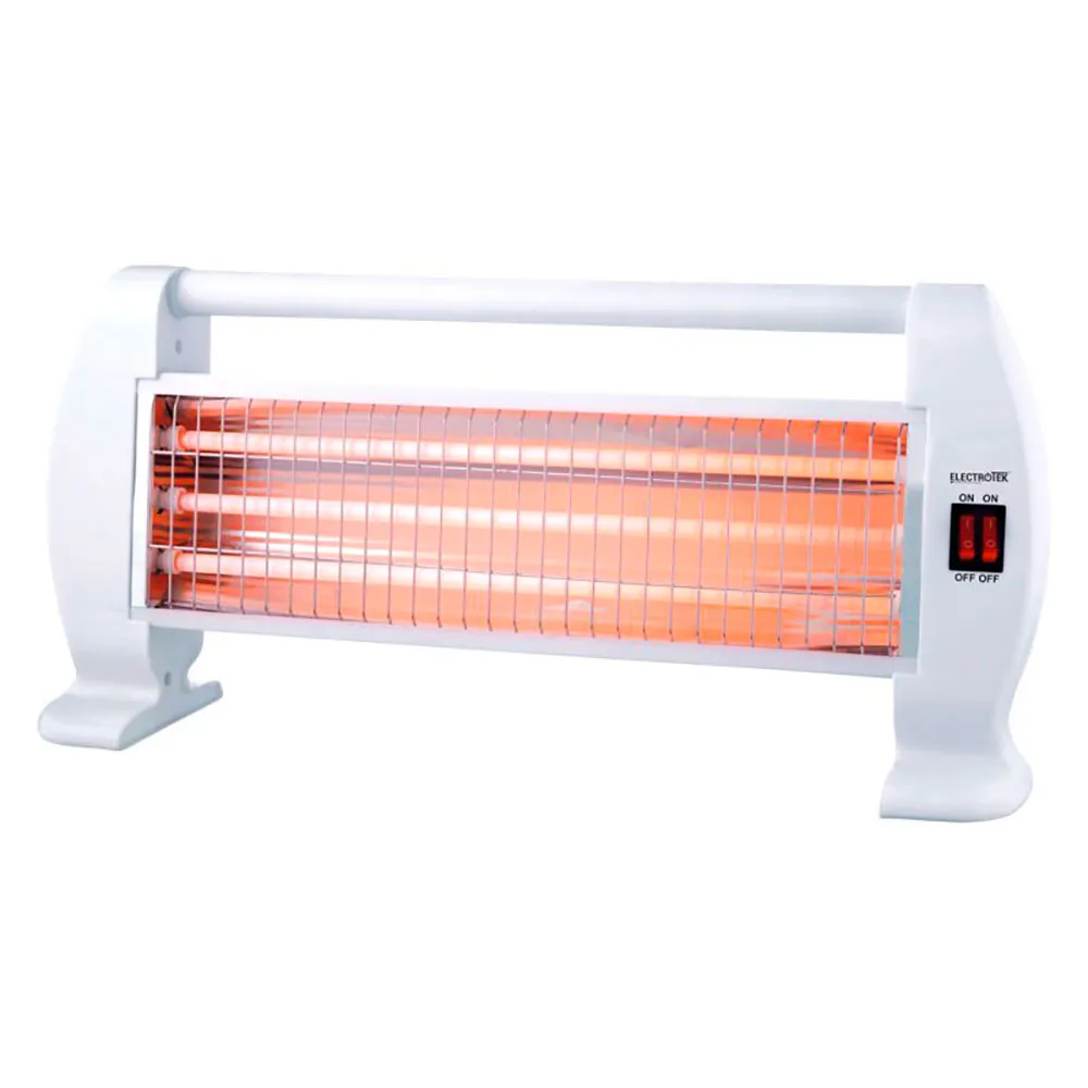 Calefactor de cuarzo, 3 niveles de temperatura, sistema de seguridad en caso de vuelco accidental.