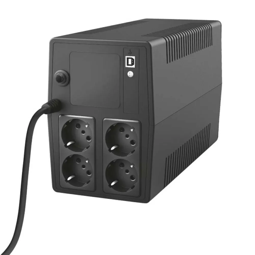 SAI (Sistema de Alimentación Ininterrumpida) fiable de 1000 VA con 4 tomas de corriente, adecuado para alimentar y proteger sus dispositivos electrónicos.