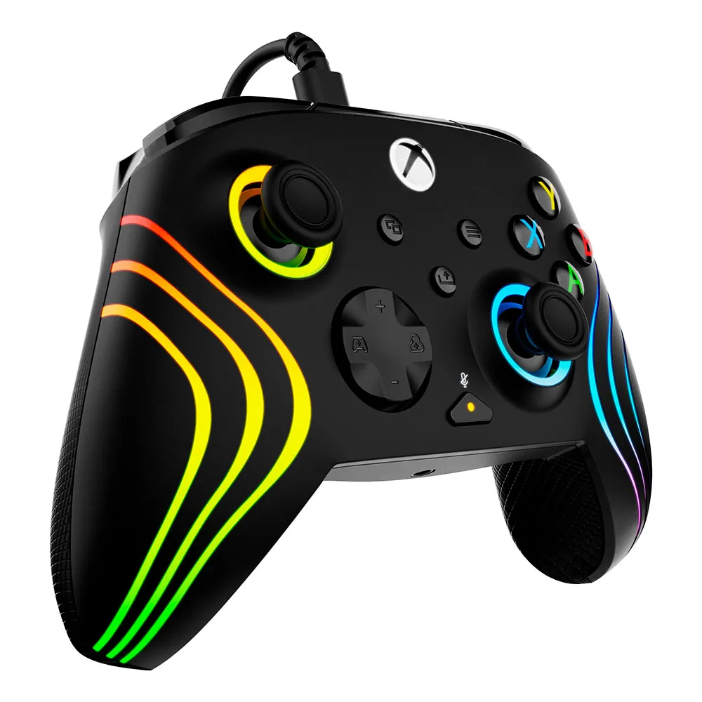 Desbloquea un rendimiento y un estilo de juego elevados con el mando para juegos RGB con cable Turtle Beach® Afterglow™ Wave, con licencia oficial para Xbox y PC.