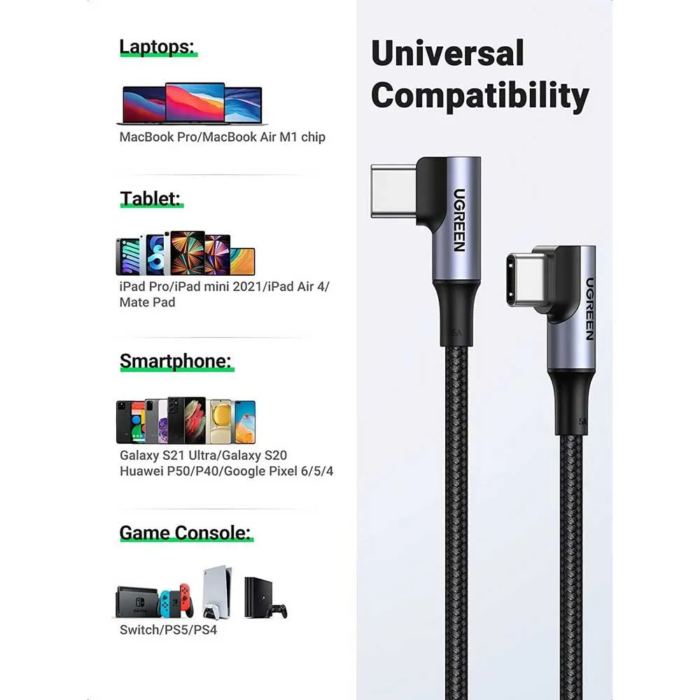 - Cable Codo de 90 Grados: Este cable USB C de 90 grados cuenta con la clavija USB C de ángulo recto para evitar cortes en el cable por tener que doblar el cable. Y los conectores de 90 grados también son ideales para los jugadores, puedes jugar los juegos cómodamente mientras se carga. Nota: Para obtener una potencia de 100W, asegúrese de que el cargador soporta 100W.