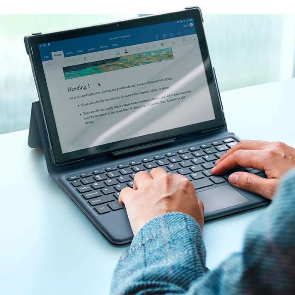 Te presentamos la funda original con teclado magnético para la Ulefone Tab A8, que cuenta con gran calidad y resistencia. Esta tiene un diseño delgado y ligero, fácil de transportar. Asimismo, el teclado con conector magnético convierte tu tablet en un portátil, y te permite realizar tus trabajos y tareas con mayor comodidad. Además, puedes plegarlo y colocarlo de forma horizontal, como si fuera un soporte.