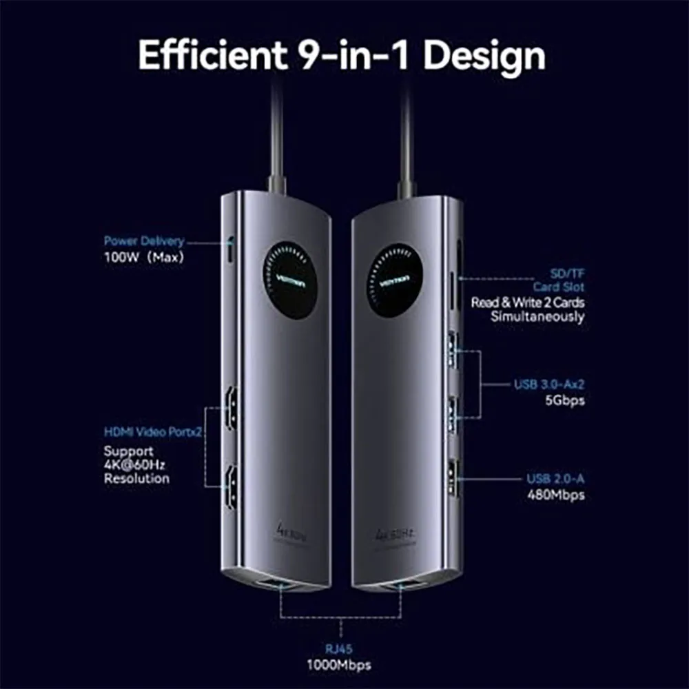 - La estación de acoplamiento Vention 9 en 1 es la solución perfecta para profesionales e individuos que aspiran a aumentar su productividad y optimizar su flujo de trabajo.Este dispositivo ofrece la notable comodidad de múltiples puertos, capacidades de transferencia de datos rápidas y compatibilidad con pantallas de alta resolución, todo en un diseño compacto y elegante que se adapta perfectamente a su espacio de trabajo. Adopte el futuro de la productividad con esta versátil estación de acoplamiento y libere su verdadero potencial en el trabajo.