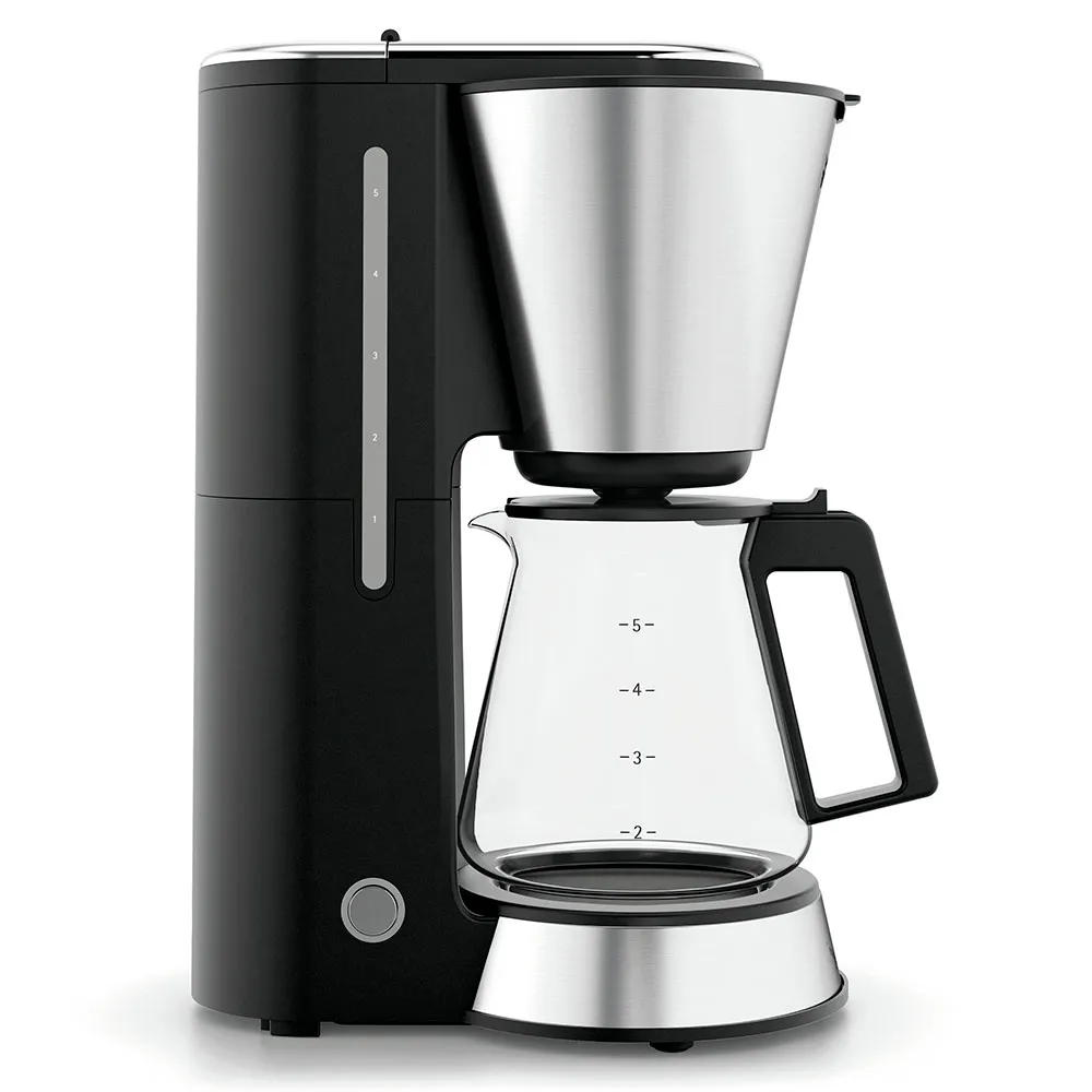 La cafetera de goteo WMF KITCHENminis, que ahorra espacio, ofrece el despertar perfecto, con un aroma puro y un diseño compacto y práctico.