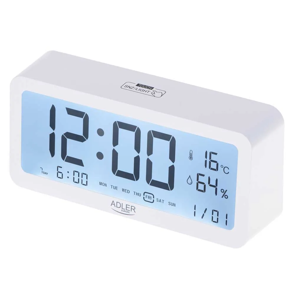 AD 1195 -herätyskello on laite, jossa on monia hyödyllisiä toimintoja, jotka voit valita tarpeidesi mukaan. Ensinnäkin siinä on 3 erillistä herätysaika-asetusta ja näyttö: aika, päivämäärä, lämpötila, kosteus. Suuri etu on luettava taustavalaistu näyttö, josta voit helposti lukea ajan ja lämpötilan. Herätyskello saa virtansa 2 AA-paristosta. Näytöt: aika, päivämäärä, lämpötila, kosteus.