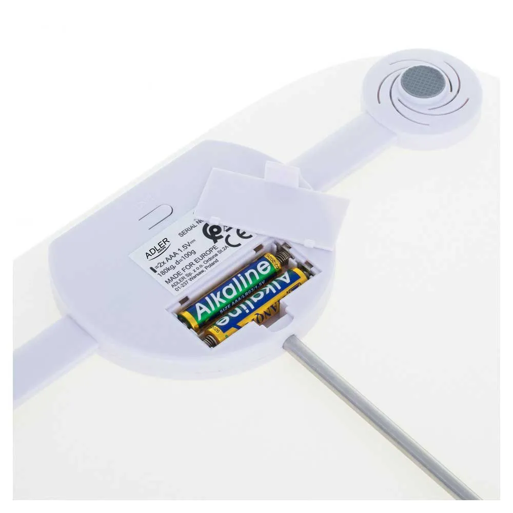 Kylpyhuonevaa´an AD8176 pinta on valmistettu 6 mm karkaistusta lasista ja sen maksimikuormitus on 180 kilogrammaa. Mittaustarkkuuden takaavat 4 venymäliuskaa. Poikkeuksellisen puhtaan valkoisen värinsä ansiosta se näyttää kauniilta jokaisessa kylpyhuoneessa. Vaa´assa on korkealaatuinen LED-näyttö. Tämän ansiosta lukema on erittäin kontrastinen ja selkeä. Numerot näyttävät siltä kuin ne olisi kaiverrettu valoon valkoiselle pinnalle.