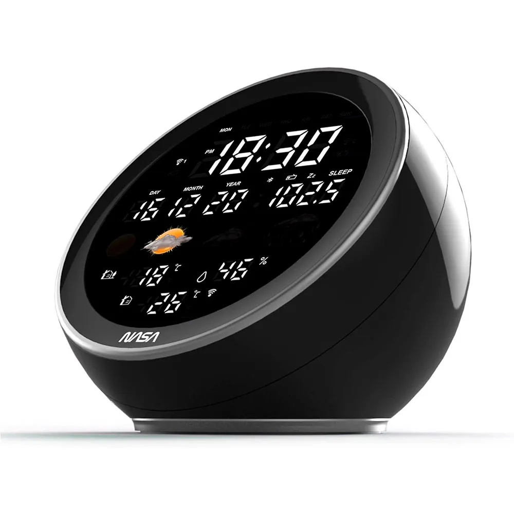 Tämä kattava laite toimii myös täydellisenä tietokeskuksena. Se sisältää sisäänrakennetun barometrin, joka mittaa ilmanpainetta ja näyttää trendinuolen, mikä auttaa sinua ennakoimaan sään muutoksia. Luonnon sykleistä kiinnostuneille kuun vaiheen näyttö lisää ripauksen astronomista näkemystä. Lisäksi WSP1500 toimii täysimittaisena herätyskellona torkkutoiminnolla, mikä varmistaa, että aloitat päiväsi ajoissa ja hyvin perillä.