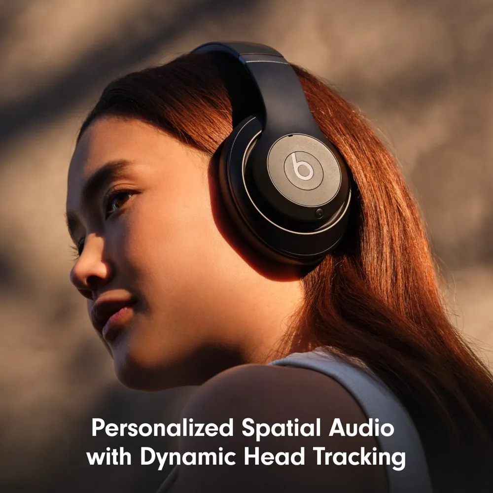 - Beats Studio Pro tarjoaa tilaäänen, jonka voit ottaa mukaan minne tahansa. Dynaamisen pään seurannan ansiosta kehittyneet sisäänrakennetut sensorit luovat vuorovaikutteisen kokemuksen, jotta voit uppoutua suosikkisisältöösi teatterimaisen äänen avulla. Se on kuin olisit ympäröity 64 kaiuttimella samanaikaisesti.
