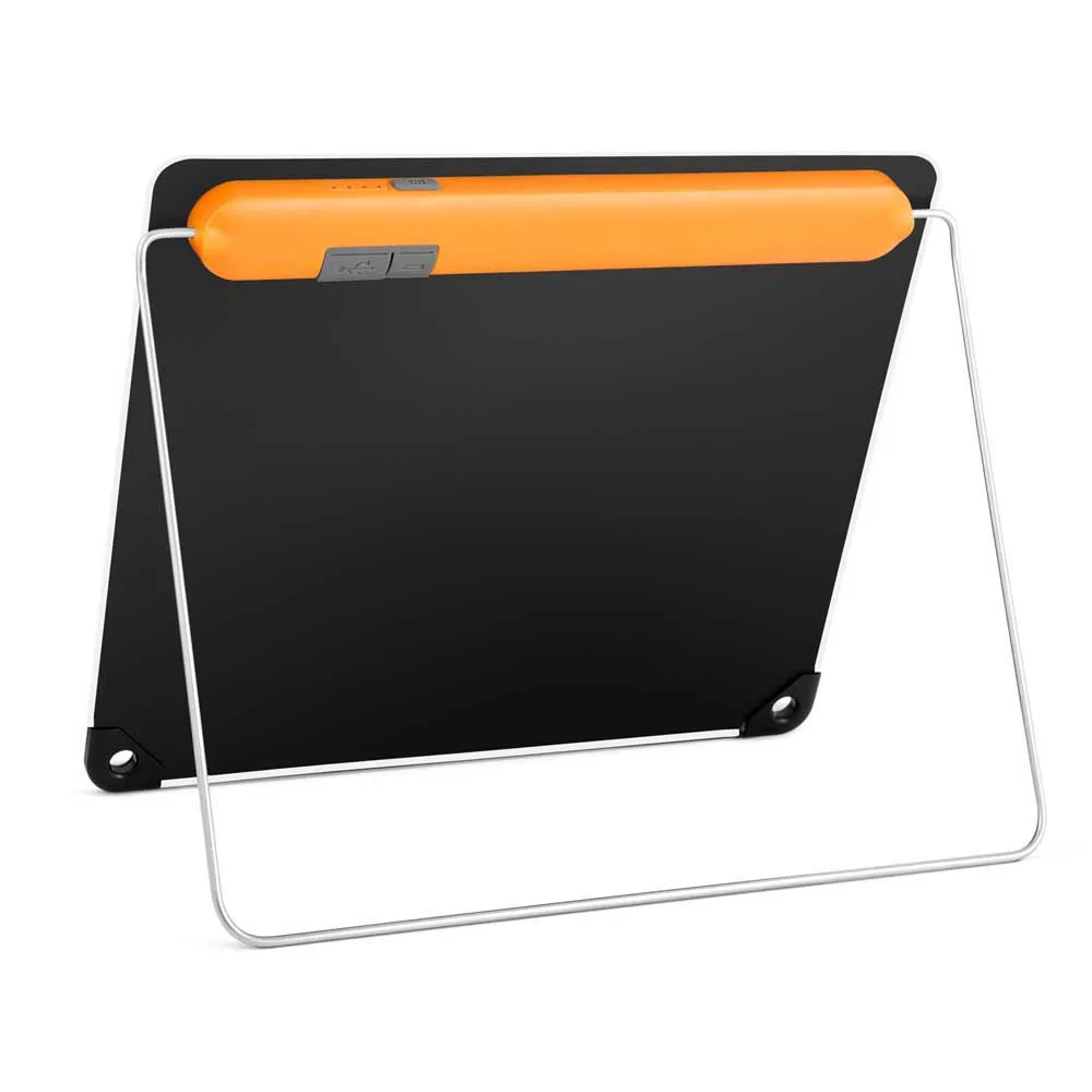 Get the most from the sun with the lightweight & portable BioLite SolarPanel 5+. Featuring BioLite´s Optimal Sun System, an integrated sundial aligns you to the sun to capture direct rays while a 360 degree kickstand simplifies positioning on uneven terrain. The 3,200mAh onboard battery stores energy for later, allowing you to charge devices when you need it most. Power phones, tablets, and BioLite gear with this ultraslim 5-Watt panel.